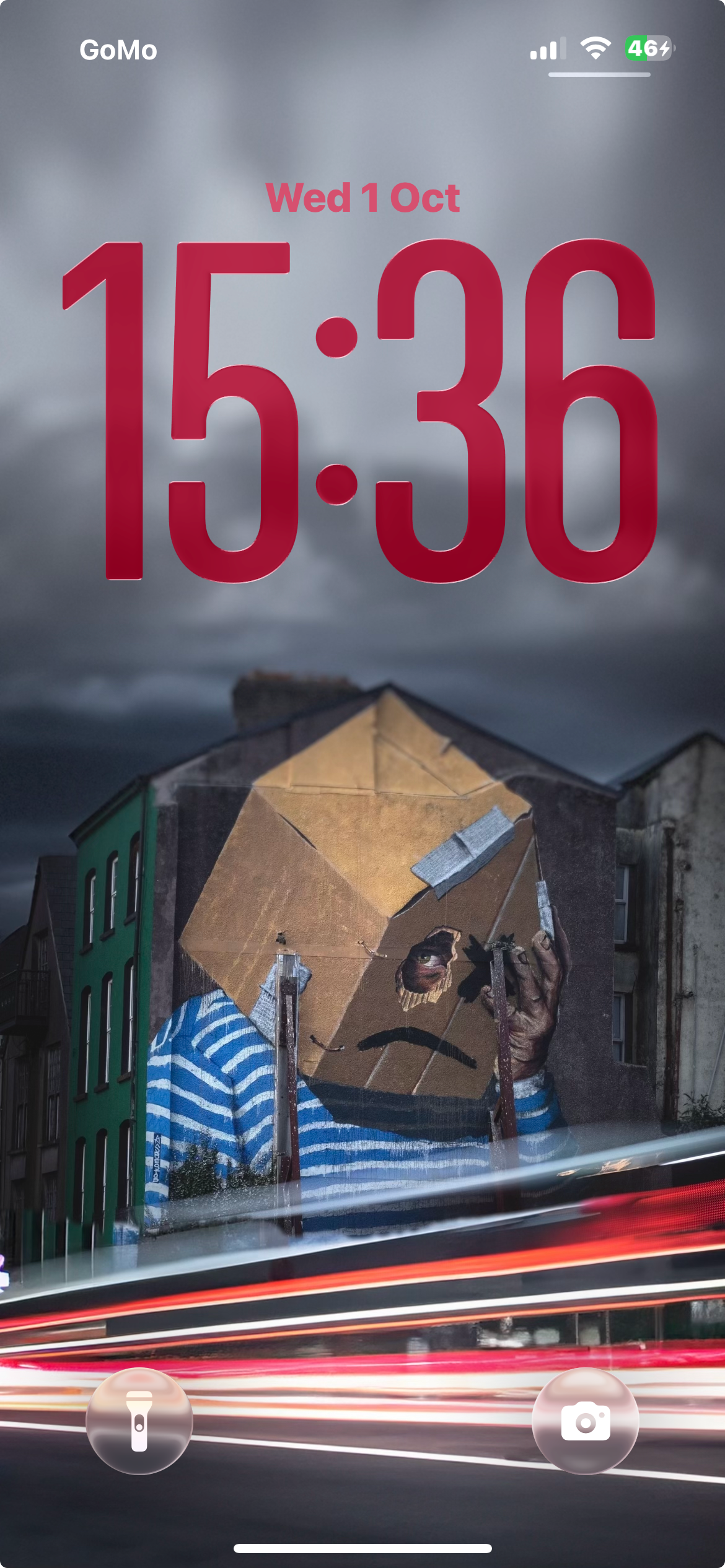 Arte urbana che raffigura un uomo con una scatola di cartone sulla testa, dipinto sul muro di un edificio. Il cielo suggestivo e le scie luminose aggiungono un senso di movimento e intensità, conferendo agli interni un tocco audace e contemporaneo.